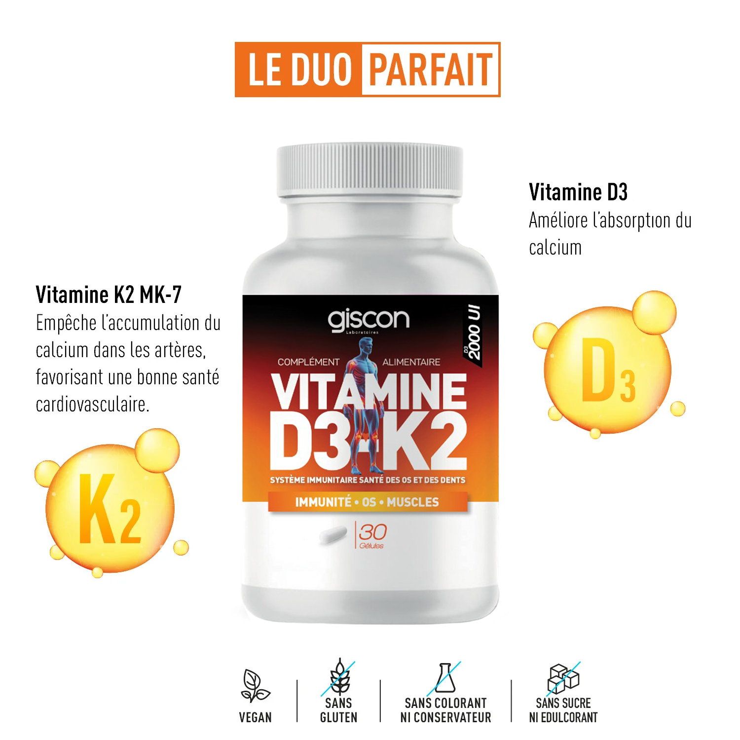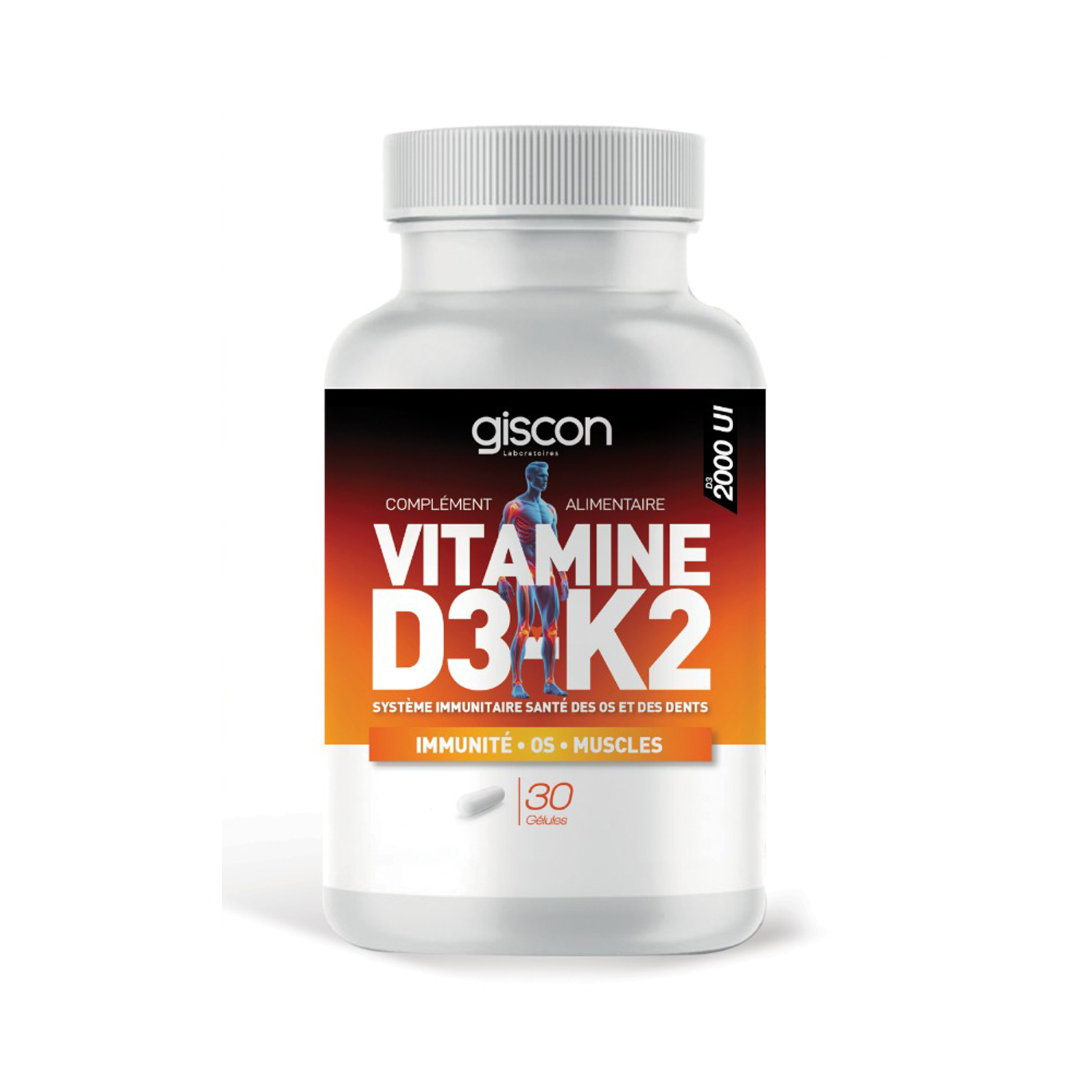 Giscon Vitamine D3+K2 30 gélules